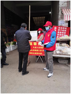 2017级环境设计3班李佳聪同学在新型冠状病毒防疫期间积极配合当地所在的云南省曲靖市会泽县古城街道盈仓社区进行为期3日的防疫工作,在防疫工作中进行了外来人员排查、当地所住居民调查、值守通宝农贸市场等工作,用实际行动参与疫情防控,守卫社区居民的安全,坚守古城街道0病例。值守通宝农贸市场期间通过张贴宣传材料、发送纸质防疫宣传单等方式加强疫情防控宣传,持续督促入市经营者和购买者佩戴口罩并且测量体温,做好防护工作。