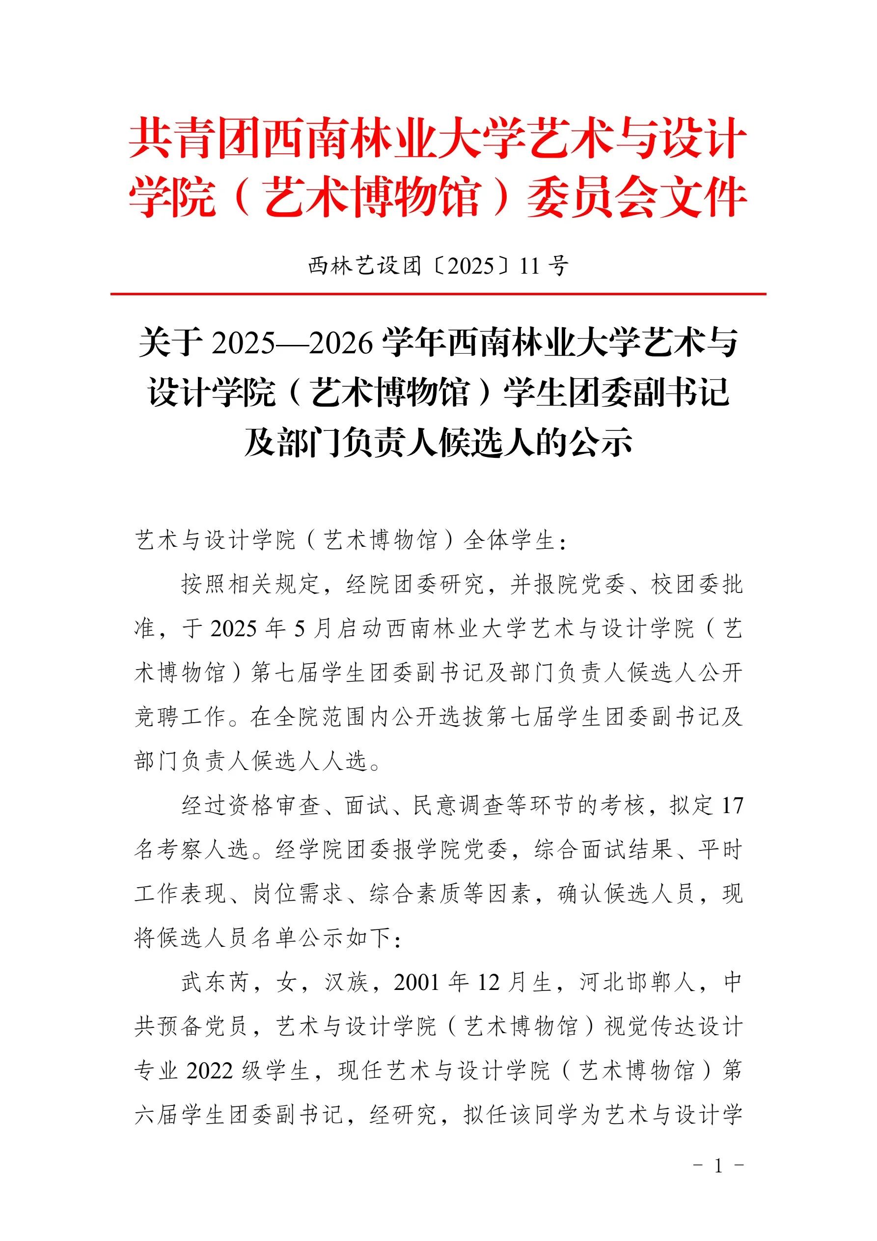 务实笃行求实效——williamhill英国官网(艺术博物馆)员工团委副书记及部门负责人候选人的公示