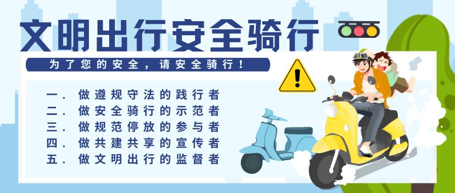 五是做文明出行的监督者。以行动践行文明,监督、劝阻不文明骑行、乱停乱放等行为,发现不文明使用行为及时制止并提醒。